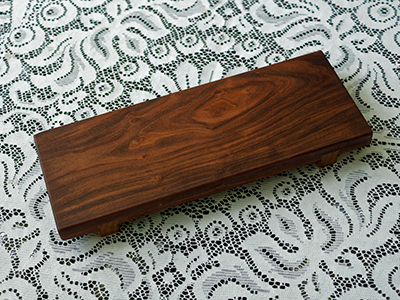 Elevate your sushi presentation with this exquisite Bolivian Rosewood sushi board. Meticulously crafted to showcase the natural beauty of rosewood, this board measures up to 15 inches long by 5.5 inches wide with a substantial 1-inch thickness.