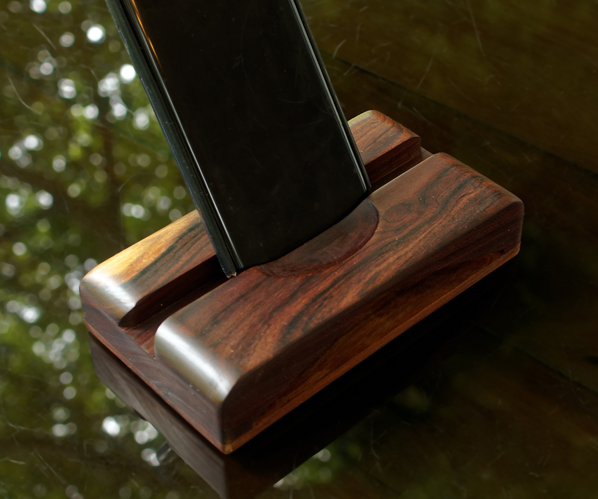 Bolivian Rosewood acoustic phone speaker, in a slim design showing the beauty of the wood